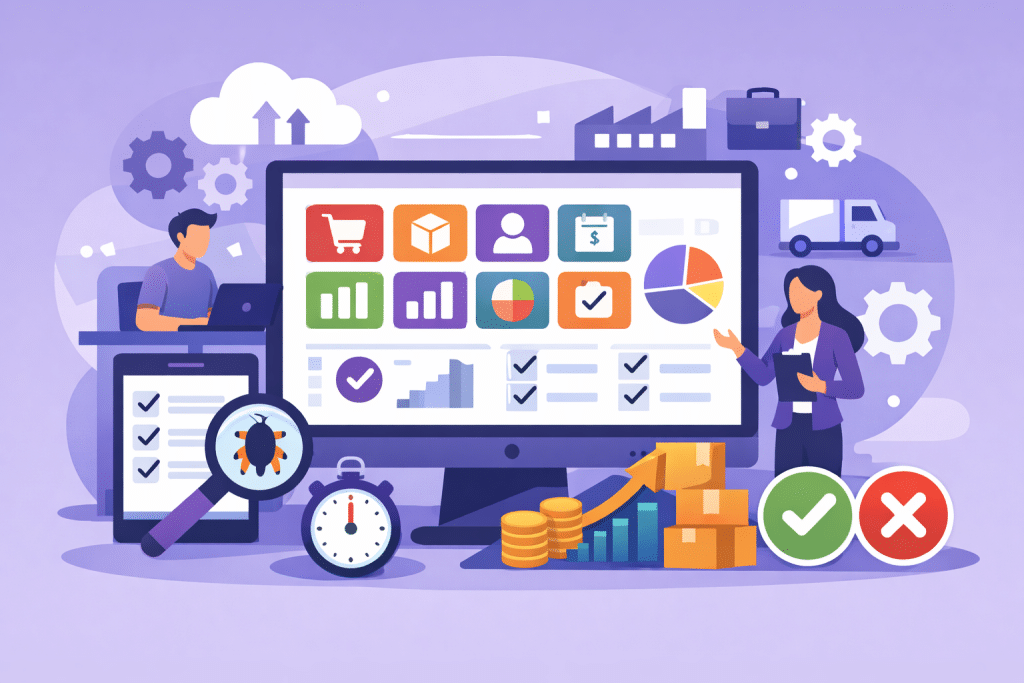 Notre avis sur Odoo repose sur une grille d’évaluation couvrant neuf critères essentiels pour une entreprise : le coût, la personnalisation, la facilité d’utilisation, l’écosystème technique, le reporting, l’automatisation, la scalabilité, le support et la gestion des mises à jour.